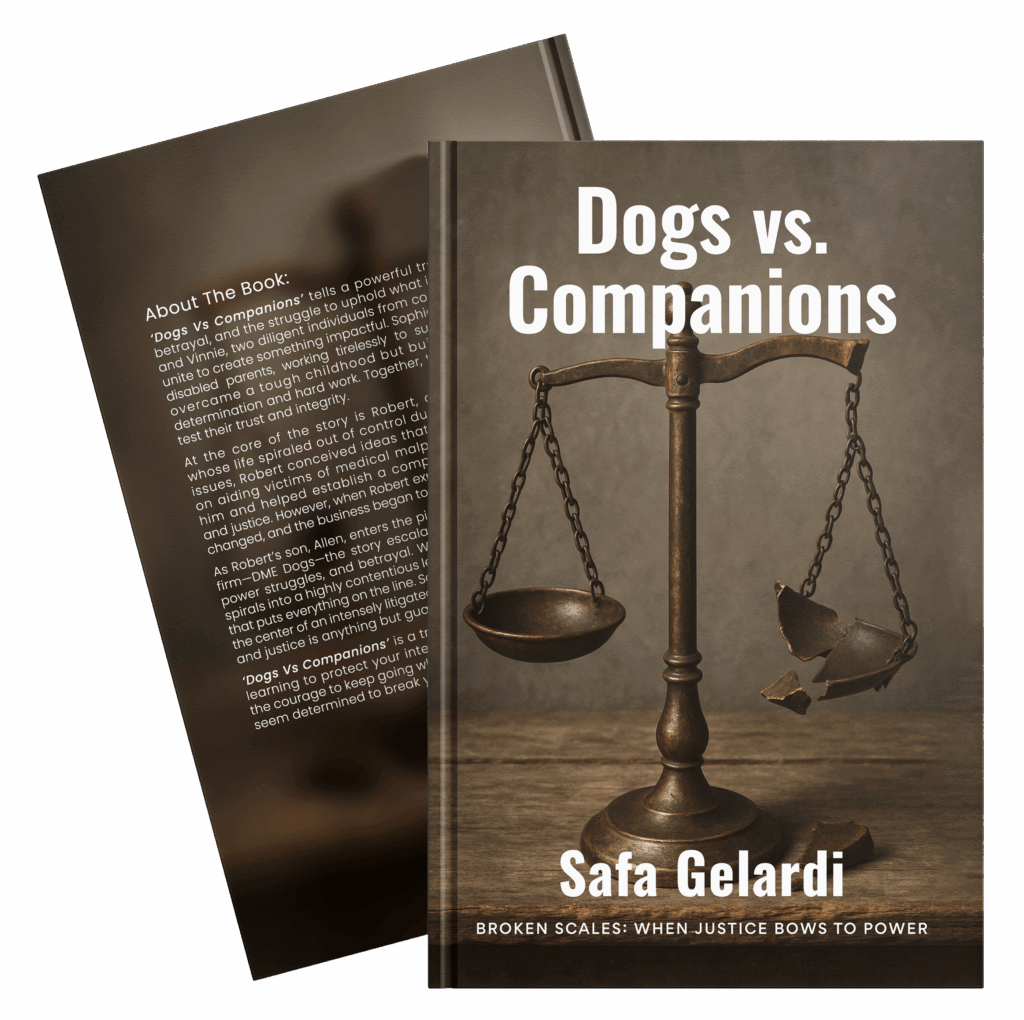 “The Dogs Wars: A True Story of Business, Betrayal, and Legal Warfare” by Sophia Gelardi is a captivating exploration of ambition, ethics, and the tangled relationships that come with pursuing success. The story centers on Sophia, a compassionate Palestinian-American woman, and Vinnie, a determined young man from a struggling background. Together, they embark on a journey into medical malpractice, driven by their desire to make a difference.